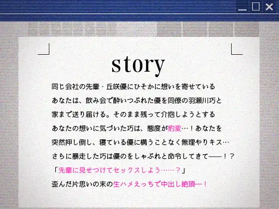 泥酔した先輩の目の前でヒロインを自分のモノにしてしまおうと